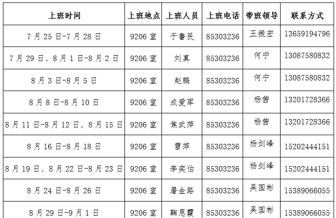 备注:暑假期间轮流上班,上班时间星期一-星期五,上午8:00-12:00,下午14:30-17:30。