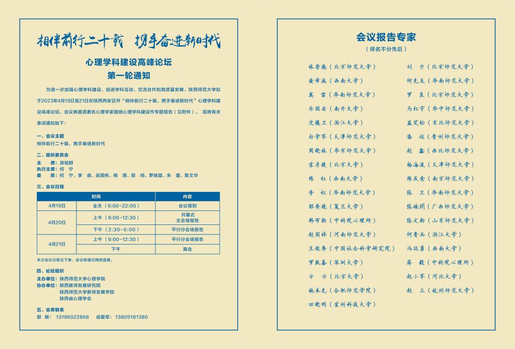 心理学科建设高峰论坛第一轮通知