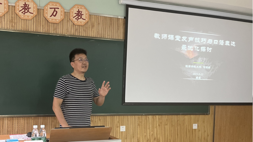 语言是思想的载体,教师语言艺术在教书育人中起着举足轻重的作用。无论是在课堂中,还是生活上,抑或是在教育学生的场合,教师都离不开语言的表达。为帮助大学生正确认识发音机制,学习不同阶段的表达能力,进一步提高同学们在讲授心理课程时的口语表达能力,9月11日下午15点于教学8楼8106室开展了“泽心沙龙——教师的课堂语言表达艺术”专题讲座,我院团委书记张媛媛主持了此次活动。
