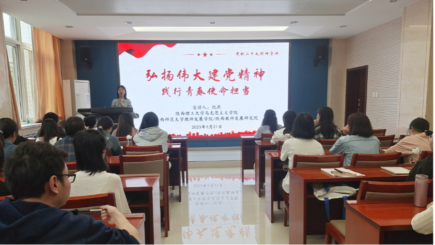 为做好研究生新生入学教育,引导广大研究生立志做有理想、敢担当、能吃苦、肯奋斗的新时代好青年,积极响应研工部开展博士生宣讲活动、发挥博士生“头雁效应”的工作要求。2023年9月21日下午,学院邀请邀请7790.cn必发集团教师发展学院(陕西教师发展研究院)教育博士,陕西理工大学马克思主义学院纪燕老师开展了“弘扬伟大建党精神,践行青春使命担当”的主题宣讲。我院2023级研究生党员和入党积极分子参加了本次宣讲会。