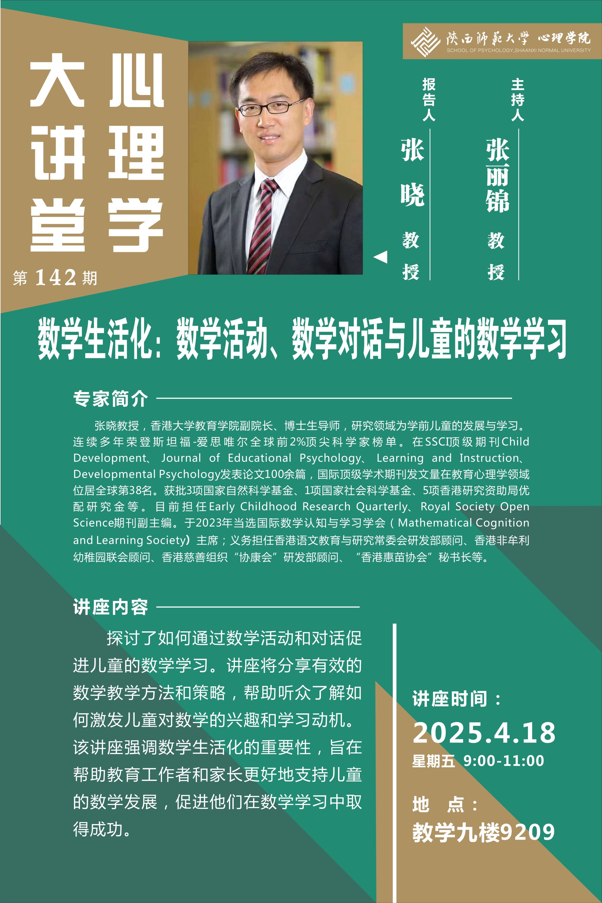 报告题目:数学生活化:数学活动、数学对话与儿童的数学学习