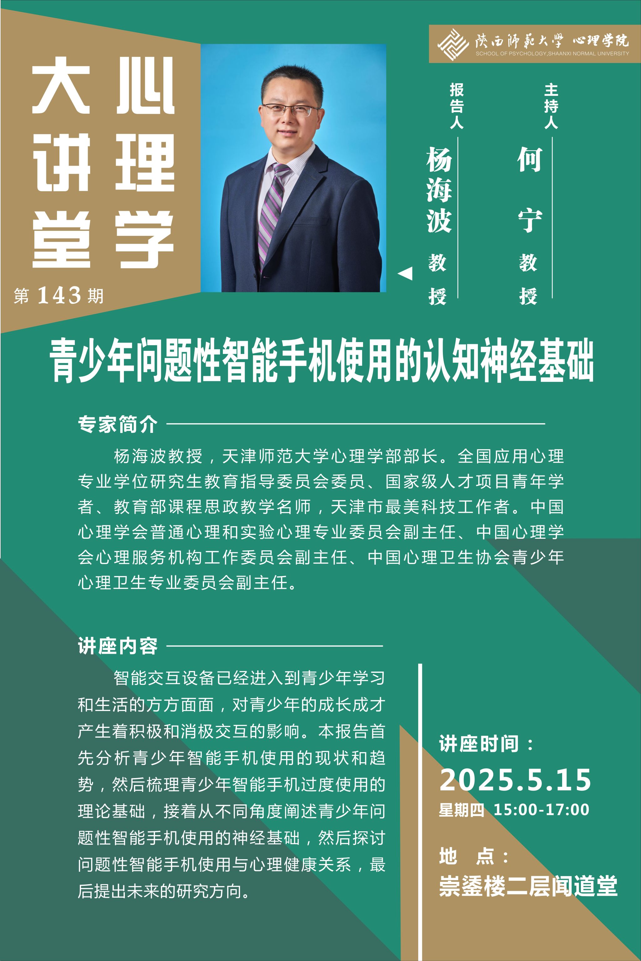 报告题目:青少年问题性智能手机使用的认知神经基础